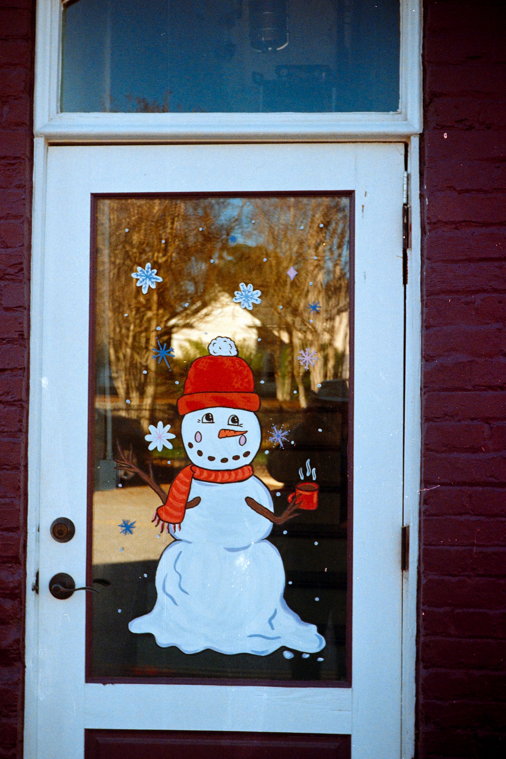 Shop Snowman - Snowman on the door to Full Bloom Coffee in Garner North