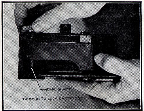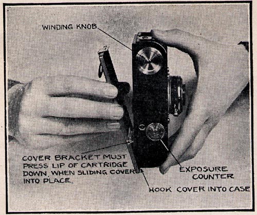 2. Pull rewind knob on bottom all the way out and insert film cartridge