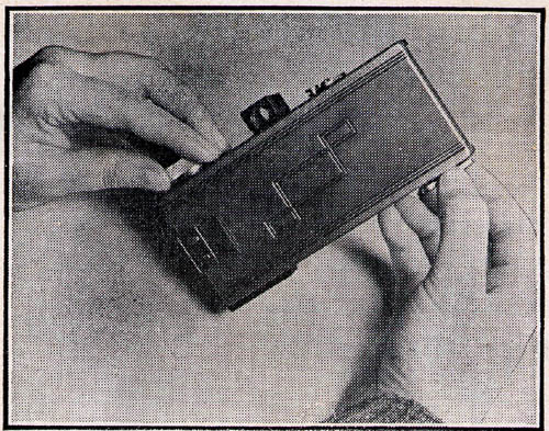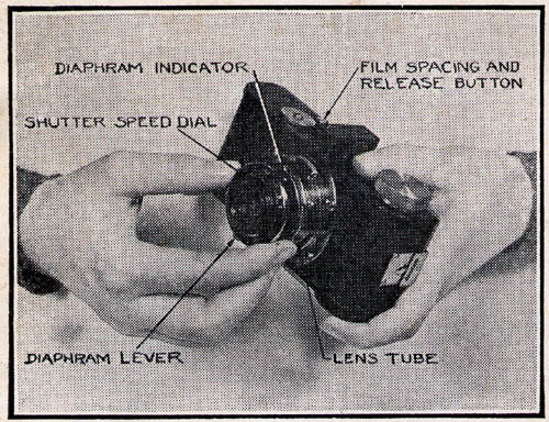 the lens on the bottom of the shutter, which, in turn, moves the pointer