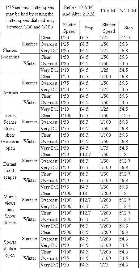 see the table on "Time of Exposure" - or better yet, use a reliable